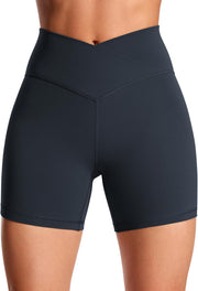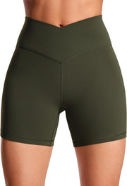 CRZ YOGA Womens Butterluxe Crossover Biker Shorts 5 Inches - Criss Cross High Waisted Workout Yoga Buttery Soft