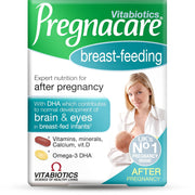 Pregnacare Breast-feeding provides specialized nutritional support for new mothers, featuring DHA to support the normal development of brain and eye function in breast-fed infants. Each tablet is fortified with essential vitamins and minerals such as calcium, vitamin D, omega-3s, and DHA, addressing the increased nutritional needs of lactation. This supplement helps maintain overall health and well-being for breastfeeding mothers, with a focus on bone health, particularly for those who avoid dairy, through nutrients like calcium, vitamin K, vitamin D, zinc, and magnesium. It also includes vitamin B6, niacin, iron, and magnesium to help sustain energy levels. Since infants cannot produce fatty acids on their own, it is important they receive these from breast milk. A balanced and varied diet is crucial for new mothers to ensure the production of nutritious milk and support their own postnatal health. Maternal breastfeeding is highly recommended for providing newborns with essential nutrients and antibodies for long-term health. Pregnacare Breast-feeding is a well-rounded supplement formulated with key ingredients, including DHA, to support both mother and baby during this significant period.