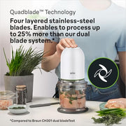 Braun MultiPractic 3 Chopper and Mincer | 2 Speed | 500 Watts | 500ml Bowl Capacity | Quad Blade System for Chopping | Ice Crushing | Mincing | Grinding | Pureeing - CH 3011 - White