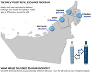 Empty cylinders can be swapped on the spot for full ones at all participating retailers including all Organic Foods and Cafe stores for a reduced 'gas only' fee.