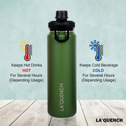 LA'QUENCH??18/8 Stainless Steel Water Bottle 710ML / 24oz Double Wall Vacuum Insulated Thermos Flask Wide Mouth Gym Sports Bottle (Army Green)