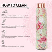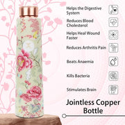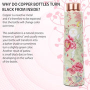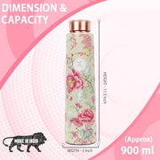 MERCAPE? - 100% Pure Joint Less Copper Bottles for Water with Leak Proof Lid | Ayurveda BPA Free & Non Toxic | Ayurvedic Office | Flower Print Bottle | Hiking Treking Bottle - 900ml