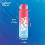MILTON 1000ml Motivational Water Bottle with Straw & Capacity Marker (Never Give Up) – Unbreakable, BPA-Free Plastic Drinking Bottle for Gym, Sports, & Camping for Kids, Men & Women - Gen'Z - Red