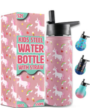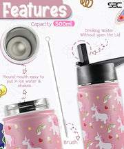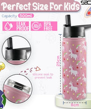 S2C Kids Water Bottle with Straw Lid – 550ml Stainless Steel, Double Wall Insulated, BPA-Free, Leak-Proof Bottle for School & Toddlers (PINK)
