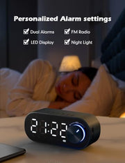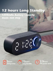 PowerPro G22 Portable Bluetooth Speaker 360° HD Stereo Super Bass with Digital Alarm Clock LED Display Night light Support AUX Cable and USB rechargeable for Our door Travel (Black)