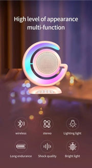 REBENUO YS -110 New Portable Speaker Small TWS Bass Speaker With Double Wireless Microphone Dazzling Lights Moon shaped ornaments. White