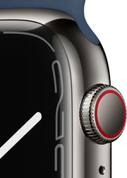 Apple Watch Series 7 (GPS + Cellular, 45mm) Smart watch - Graphite Stainless Steel Case with Abyss Blue Sport Band - Regular. Fitness Tracker, Blood Oxygen & ECG Apps, Water Resistant