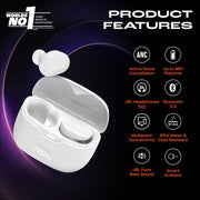 [Bluetooth 5.3 with LE Audio Support] - Thanks to the next generation Bluetooth technology, the JBL Tune Buds earbuds stream audio with low power consumption at high quality. Plus, BT 5.3 allows to stream synchronized audio independently to each earbud, so that you can use either or both earbuds. Or you can share your video or music content with a friend wearing headphones, as BT 5.3 lets you seamlessly stream audio to multiple listeners.