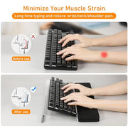 - 📏 Perfectly Fit Various Keyboards: The keyboard stand's dimensions are 43154cm (16.95.91.57in) and the wrist rest's size is 4391.8cm (16.93.540.71in), fitting most standard keyboards, including gaming, standard, and full-sized keyboards. It's the perfect wrist and hand fatigue reliever for workers, gamers, and writers engaged in long typing sessions.