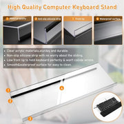 - ⌨️ Keyboard Holder with Wrist Rest: Made from high-quality 4mm clear acrylic, this computer keyboard stand is sturdy and strong with smooth, polished finishes. The keyboard wrist rest is made of foam and superfine fiber, waterproof and breathable, improving hand and wrist posture, reducing joint and wrist problems, and relieving elbow and shoulder stress. Note: Not recommended for slim keyboards.