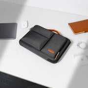 - Slender Profile with Retractable Handle: Engineered with a retractable leather handle, this protective laptop carrying sleeve case cover bag with handle offers unparalleled ease of transportation, it’s slim shape offers a lightweight solution for carrying your laptop and essentials. High-quality stitching enhances the laptop sleeve's durability, ensuring that it withstands the rigors of daily use, A perfect laptop companion for your on-the-go lifestyle.