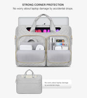 - COMPREHENSIVE PROTECTION: Fortified by 360 Degree All-around protective Thickened Plush Edge frames, this computer bag excels in great cushioning and shock absorption, protecting your laptop from damages caused by accidental minor shocks, bumps, or dropping. The laptop bag, in addition, filled with high-elasticity sponge buffer material for added further protection. Enhance laptop storage comfort, offer soft and sturdy protection.