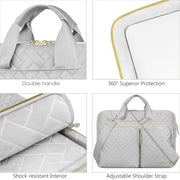 - ANTI-STATIC RHOMBIC-RAISED PATTERN: Ultra-soft velvet lining of the laptop bag delivers antistatic property to prevent the creation of static electricity, minimize the risk of static-related damage, enhances your device longevity. The fancy leather fabric is also designed with Rhombic-Raised pattern which is water-repellent, scratch-resistant, hard-wearing and durable, offering unparalleled protection for your valuable laptop and everyday life.