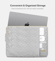 - Shockproof Extra-Thick Padding: This laptop bag is filled with high-elasticity sponge buffer material prevent bump damages, keep your computer safe on your daily commute or international flight, thanks to the soft quilted and water-resistant leather fabric, this laptop case offer reassuring protection against water-splashes and scrapes. Keep your laptop and accessories safe from the unexpected dangers with a super-sleek, form-fitting laptop sleeve.