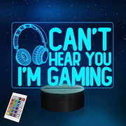 NALACAL Can't Hear You I'm Gaming Night Light, Headset Graphic Video Games Gamer Gift Funny 3D Illusion Lamp 16 Colors Changing Touch & Remote Control for Men Gamers Teenagers and Kids