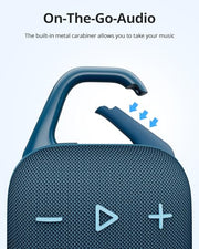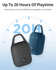 - 【Integrated Carabiner】The Bluetooth speaker featuring a sturdy carabiner with a wide opening, that makes it even more portable. You can attach the speaker to almost anything from your backpack to your belt loop, and take your music with you all day, everywhere