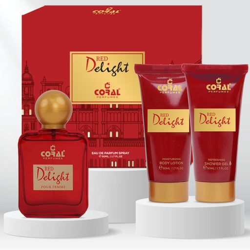Coral Red Delight Pour Femme Gift Set For Women | Eau de Parfum, Body Lotion & Shower Gel (50ml Each) | Elegant Women's Fragrance Set | For All Occasions
