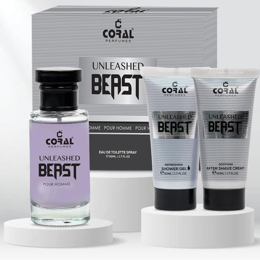 Coral Unleashed Beast Pour Homme Gift Set For Men | Eau De Toilette, After Shave Cream & Shower Gel (50ml Each) | Bold & Invigorating Fragrance