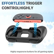 The snap-in design makes installation and removal quick and effortless, while durable ABS plastic and reinforced rubber construction provide long-lasting use. Whether you're playing solo or with friends, these Joy-Con grips deliver enhanced control and style with every session.