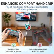Crafted for comfort, each grip features an ergonomic shape that reduces hand fatigue, allowing for longer, more enjoyable gameplay. The textured, non-slip matte rubber ensures a secure hold even during the most intense battles or high-speed races.