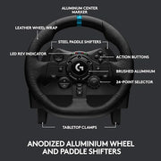 Logitech G923 Racing Wheel and Pedals, TRUEFORCE Feedback, Responsive Driving Design, Dual Clutch Launch Control, Genuine Leather Steering Wheel Cover, for PS5 Pro, PS5, PS4, PC - Black - UAE Version