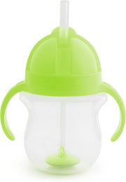 Munchkin Any Angle Click Lock Weighted Straw Trainer Cup, spill proof cup with handles, for infant/baby boys and girls, 7oz Capacity, 6 Months and above, Green