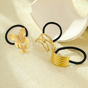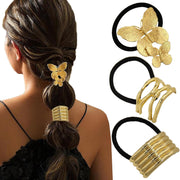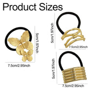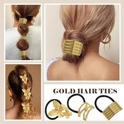3PCS Metal Hair Ties, Ponytails Hair Cuffs Metal Geometric Elastic Hair Ties Women's Glossy Ponytail Hair Elegant Durable Design Tie Hair Accessories for Thick Hair Ponytails suitable (gold, 3pcs)