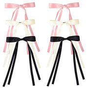 Bmobuo Hair Ribbon 6PCS, Satin Coquette Aesthetic Ponytail Holders - Women's Hair Bows, Alligator Clips and Barrettes in White, Black, Pink