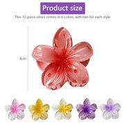 nalaina 12PCS Floral Hair Claws with Non-Slip Hold, Hawaiian Plumeria Claw Clips for Women & Girls, Summer Beach Hair Accessories for Women, Casual Outfits & Gift (6 Colors, 4x4x4cm)