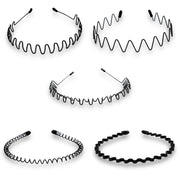 Timoo 5 PCS Metal Spring Wavy Hairband Hair Hoop, Simple Fashionable Headband Headwear Accessories for Men, Women, Black