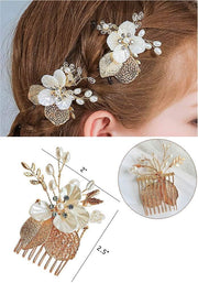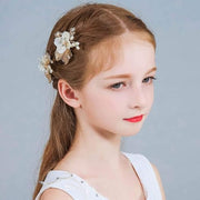 Wedding Flower Girl Hair Pins Bride Pearl Hair Piece Crystals Hair Clips Bridal Hair Accessories for Women and Girls Pack of 2 (Gold)