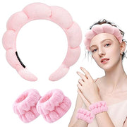 Zkptops Spa Headband for Washing Face Wristband Sponge Makeup Skincare Headband Terry Cloth Bubble Soft Get Ready Hairband for Women Girl Puffy Padded Headwear Non Slip Thick Hair Accessory(Pink)