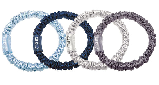 Silklo Silk Scrunchies, 100% Pure Mulberry Hair Ties 22 Momme Anti Hair Loss No Breakage Anti Crease Anti Frizz Hair Accessories Black Elastic Hair Band for Women Girls Hair Care 4Pcs (Moonlight)