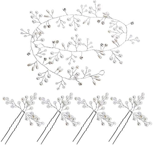 Wedding Pearl Hair Vine *1 + Crystal Hair Pins *4 - Bride Jewelry Hair Accessories Bridal Headband Headwear Pearl Wedding Hairband Headpiece for Wedding Prom Party Festival Headdresses for Women Girls