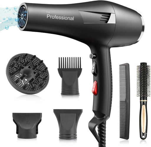 Faszin Ionic Hair Dryer, Salon Professional Blow Dryer 2400W AC Motor Fast Drying with 2 Speed, 3 Heat Setting, Cool Button, with Diffuser, Nozzle, Concentrator Comb for Curly and Straight Hair