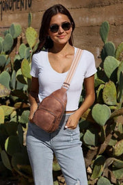 BIGTHREE Small Sling Bag for Women, Leather Fanny Pack Crossbody Bags for Women and Men, Chest Bag With Guitar Strap, PU Leather Crossbody Bags, Crossbody Fanny Pack Sling Bag for Hiking Running