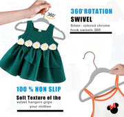 GVTECH Kids Hangers Velvet, [50 Pack] Children Cloth Durable Baby Hangers for Closet - Perfect Infant Toddler Kid Hanger for Everyday Use, Non Slip 360° Hooks for Shirt, Pant (50 Pack, Grey)