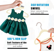 【Anti Slip】: The velvet coated surface of the hangers keeps your Clothes from falling or sagging. This Set of non-slip hangers are gentle and having non-slip velvet surface holds on to clothes tighter than you do, so that nothing, not even a silk dress slips off.