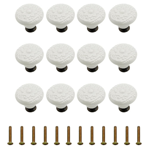 Unlorspy 12 Pcs Ceramic Knobs, 34mm/1.33 Inch Diameter Floral Ceramic Cabinet Knobs Decorative Knobs Round Dresser Knobs Drawer Pulls Handles Single Knobs with Screws for Furniture Cabinet (White)