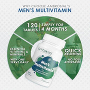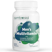 Ambrosial Men's Multivitamin with Lycopene, Ginseng & Grape Seed Extract That Supports Muscle Strength, Immunity, Energy and Endurance (Pack of 1-120 Tablets)