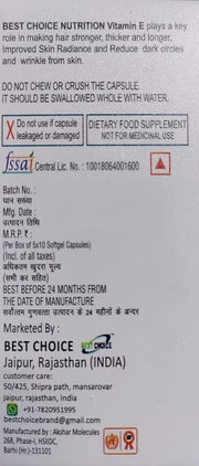 This product is best choice nutrition glow face hair pimple glowing skin nail care 400 vitamin e capsule - pack of 50.