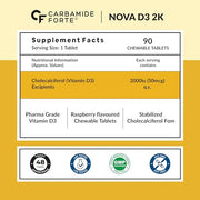 Carbamide Forte Chewable Vitamin D3 2000 IU - Cholecalciferol Vitamin D Supplement for Women & Men | Raspberry Flavour - 90 Tablets