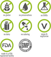 • Premium Quality: Made with premium ingredients in a U.S.-based, GMP-certified facility and third party tested for purity. Non-GMO, Gluten Free, Soy Free, Vegan & Vegetarian, with NO Coloring, Flavoring, or Preservatives.