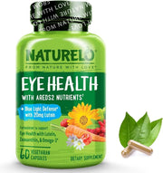 NATURELO Eye Vitamins - AREDS 2 Formula Nutrients with Lutein, Zeaxanthin, Vitamin C, E, Zinc, Plus DHA - Supplement for Dry Eyes, Healthy Vision, Eye Support - 60 Vegan Capsules