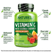 NATURELO Vitamin C with Organic Acerola Cherry Extract and Citrus Bioflavonoids - Vegan Supplement - Immune Support - 500 mg VIT C per Cap - Non-GMO - 90 Capsules