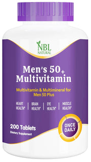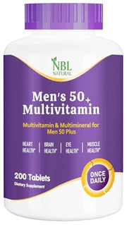 NBL Natural Multivitamin for Men 50 Plus, Multimineral Supplement, Vitamin D3, B-Vitamins and Zinc, Supports Memory and Cognition in Older Adults - 200 Tablets