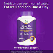 - One 200 count bottle of NBL Natural Multivitamin for Men 50 Plus, Multivitamin/Multimineral Supplement with Vitamin D3, B-Vitamins and Zinc
