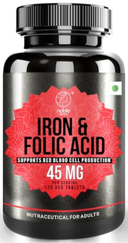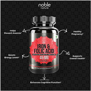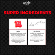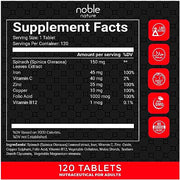 Noble Nature Iron with Folic Acid & Spinach Extract Supplement - 120 Tablets | Iron, Zinc, Vitamin C, Folic Acid & Vitamin B12 |