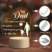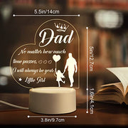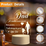 Show your appreciation for Dad with this beautiful BPA Father's Day Gifts for Dad from Daughter. This thoughtful gift is perfect for birthdays, Father's Day, Thanksgiving, and more. The high-quality acrylic and plastic base make this a stunning addition to any room. The warm white light is gentle on the eyes, making it perfect for use as a night light or party decoration. Celebrate Dad with this meaningful and unique gift that he will cherish forever.