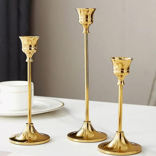 Candle Holders Candlestick Holders Decorative Candle Stand - Table Centerpiece Decorative, Metal Taper Candle Stick Holders for Vintage Modern Wedding Dinning Party Living Room (Golden 3pcs)